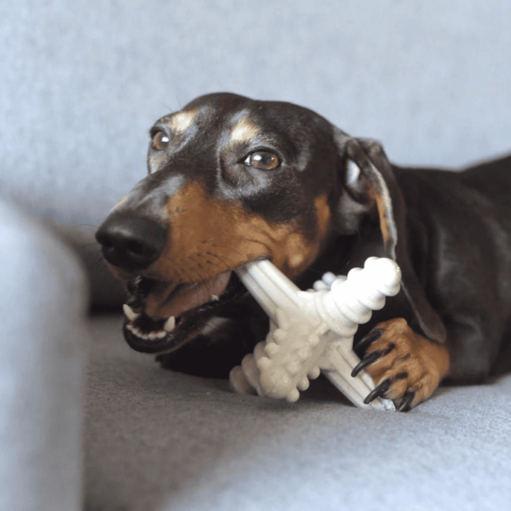 Diversão em 360º com firmeza e conforto na medida certa. Perfeito para cães exigentes que amam roer.