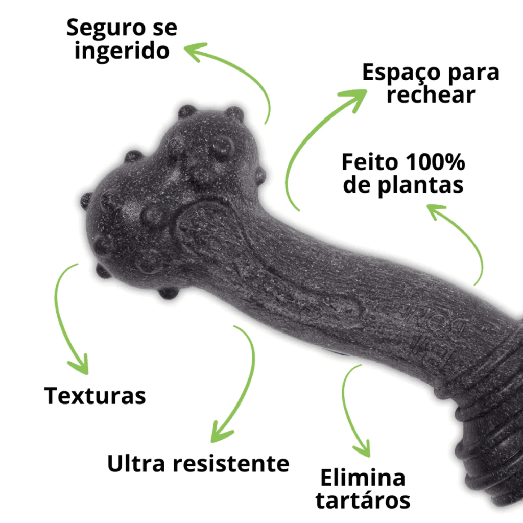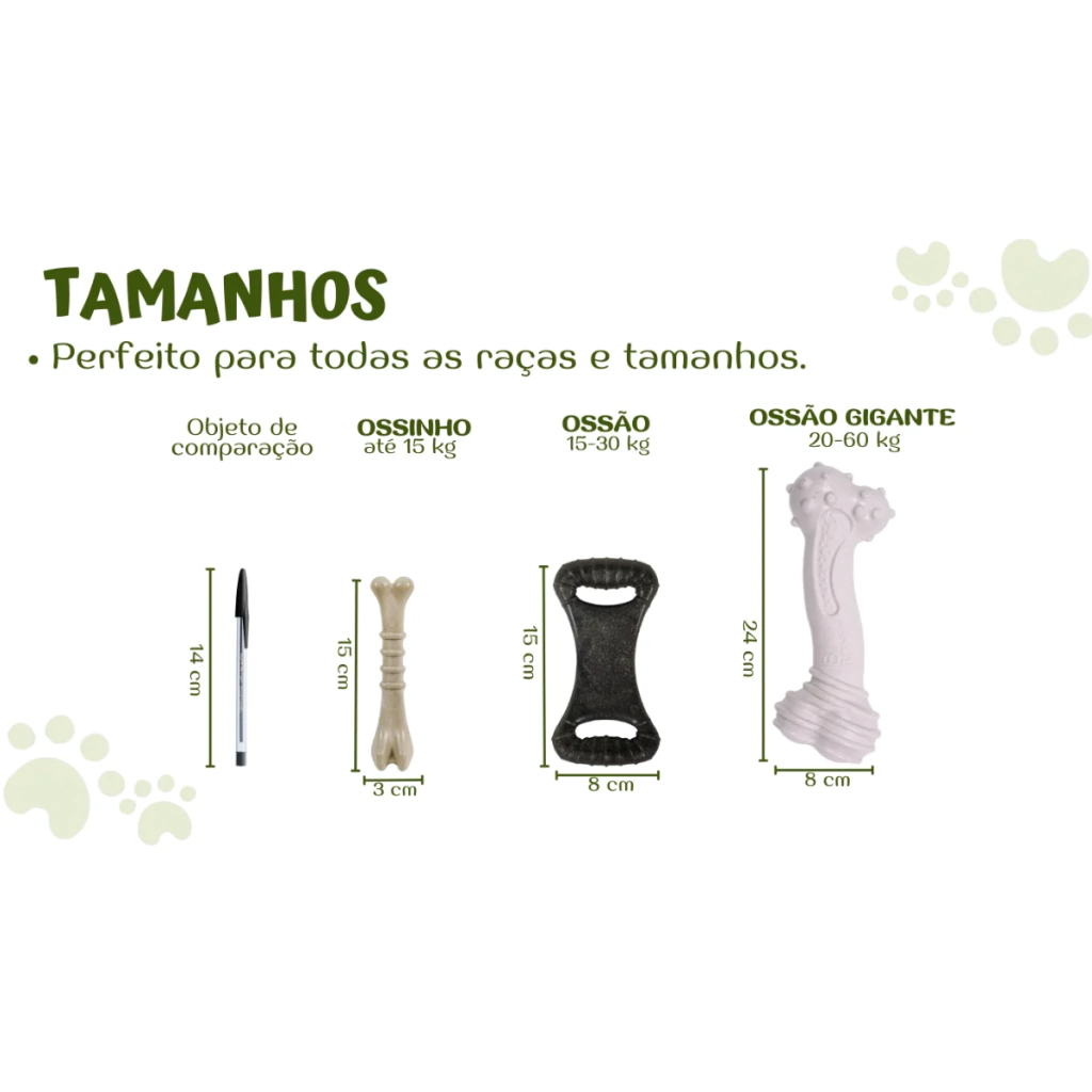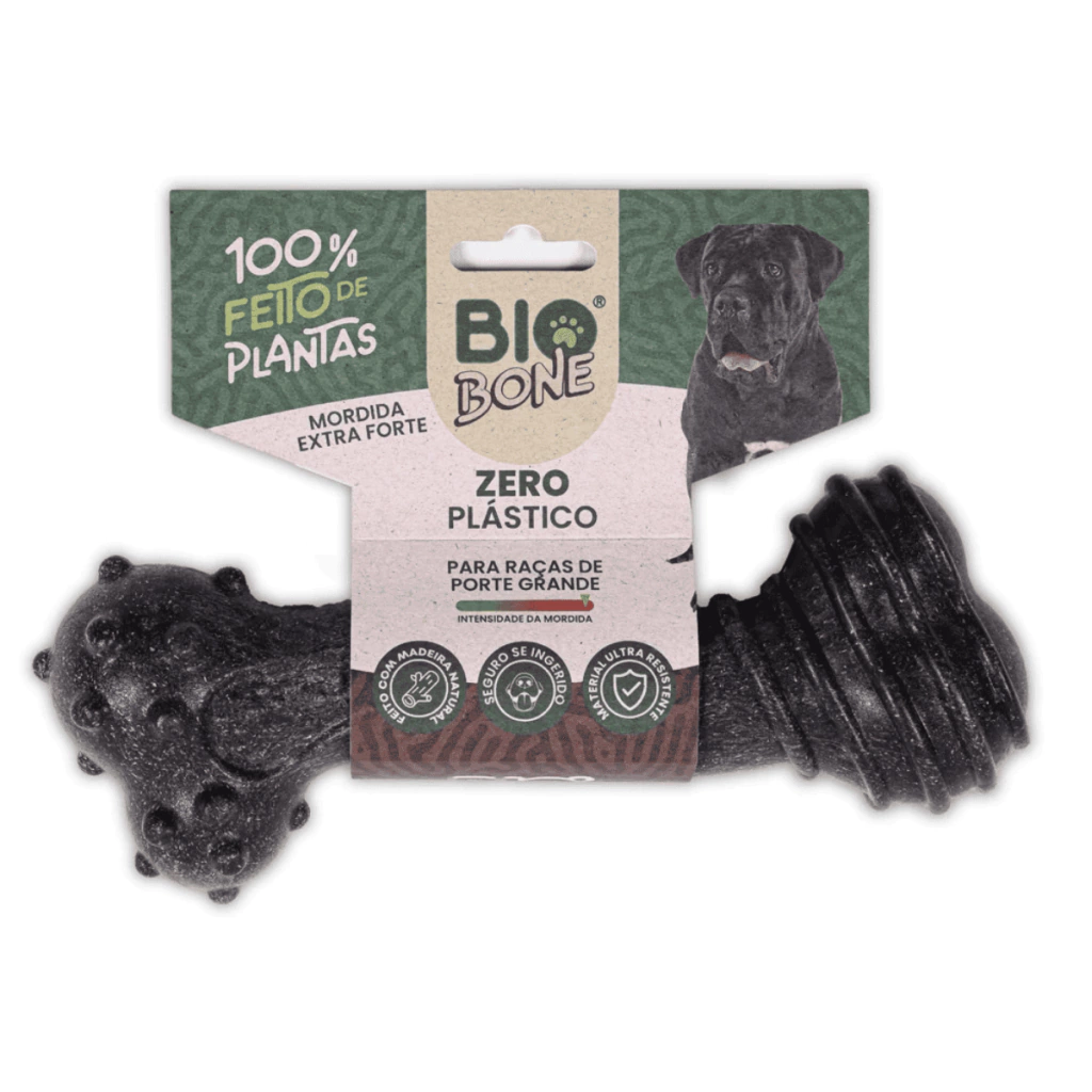 O Ossão Gigante Biobone foi desenvolvido para cães de porte grande com mordida extra forte — o perfil destruidor que precisa de um desafio à altura. Produzido com biocomposto vegetal e fibra de madeira, é o modelo mais resistente da linha, ideal para garantir horas de entretenimento seguro e saudável.
