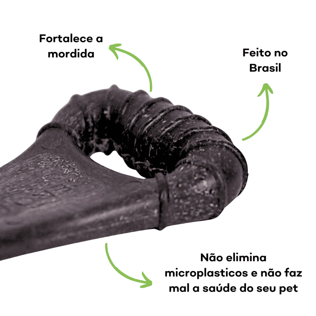 Esse mordedor é 100% natural, livre de plásticos, microplásticos e aditivos químicos, sendo seguro mesmo em caso de ingestão acidental. Além disso, é hipoalergênico, sustentável e se transforma em adubo ao final da vida útil — cuidando do seu pet e do planeta ao mesmo tempo.