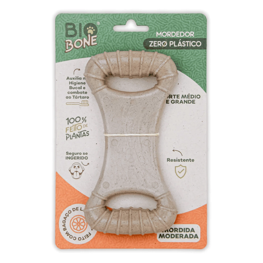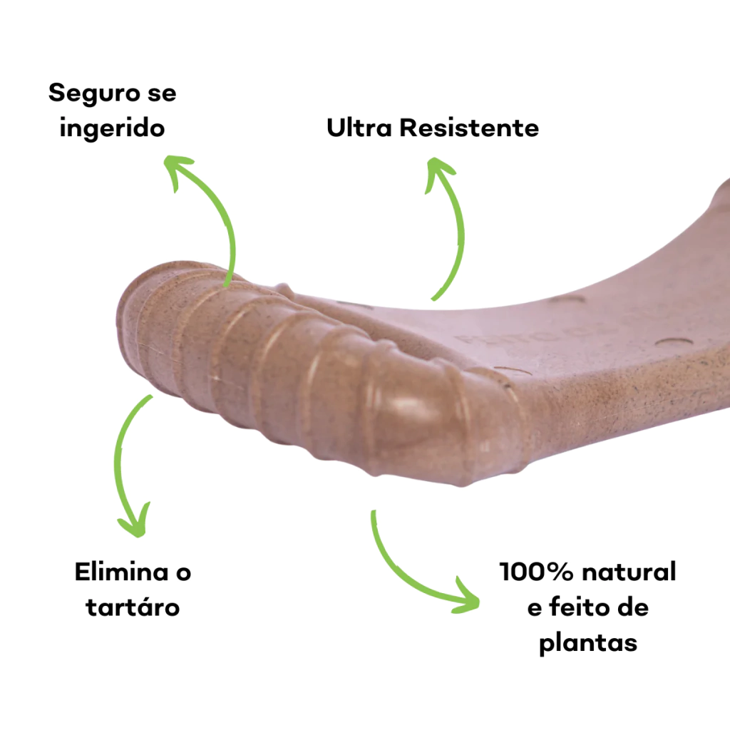 Feito com biocomposto vegetal e bagaço de laranja, esse mordedor é 100% natural, sustentável, livre de plásticos e aditivos químicos, e seguro até mesmo em caso de ingestão acidental. Além de promover saúde bucal, ele se transforma em adubo ao final da sua vida útil — cuidando do seu pet e do planeta.
