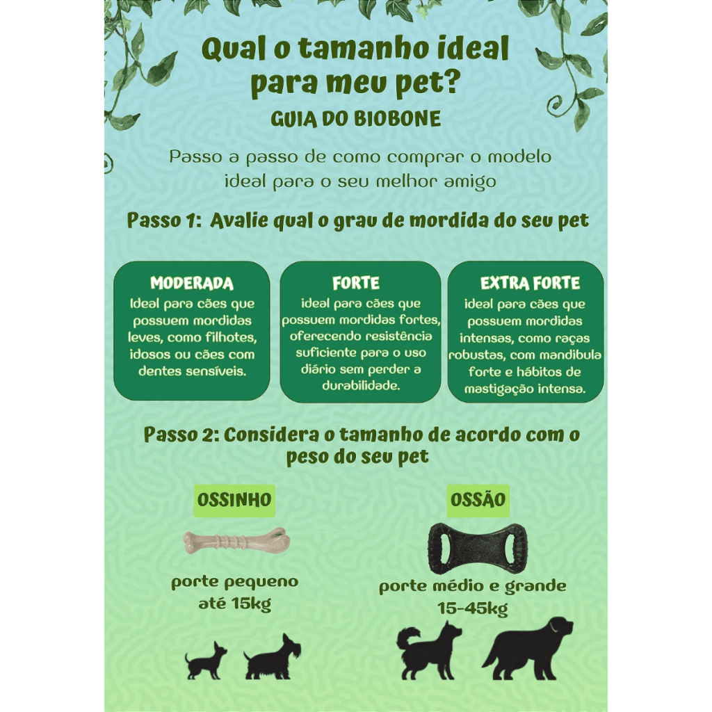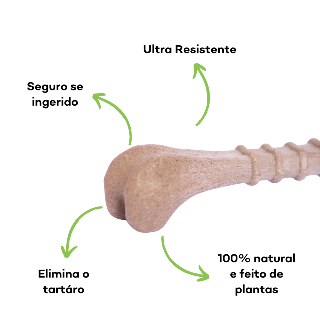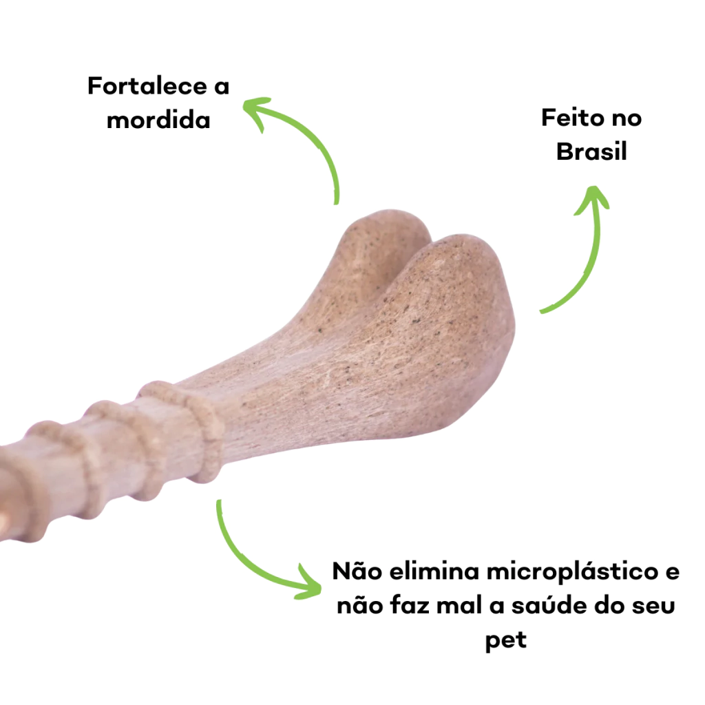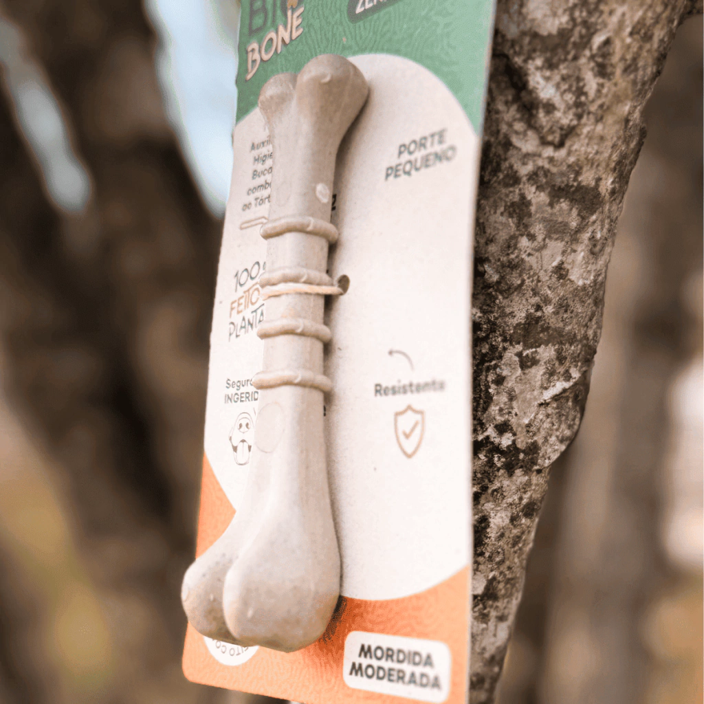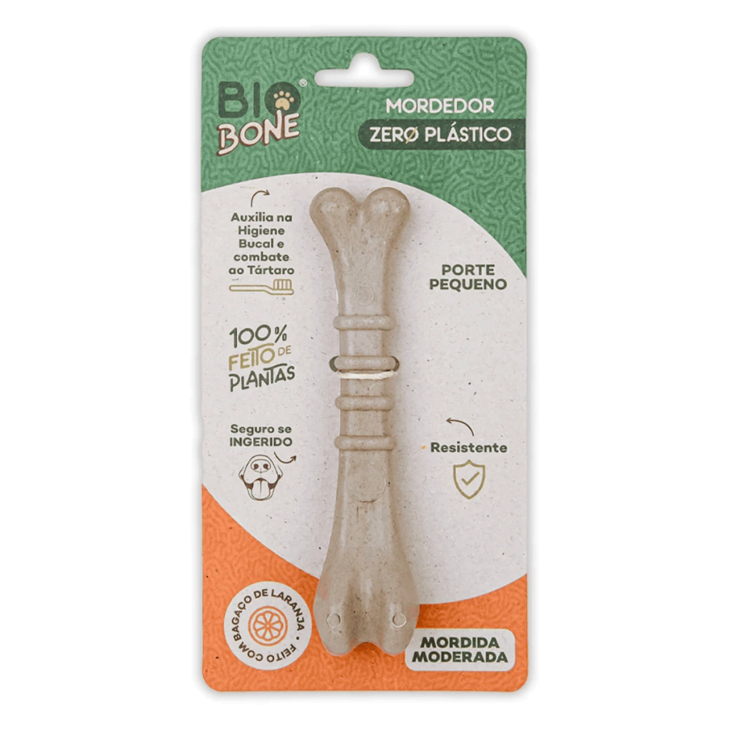 O Biobone Ossinho Pequeno – Mordida Moderada é ideal para cães de porte pequeno com mordida leve a moderada, ou para aqueles que não gostam de brinquedos muito rígidos. Feito com biocomposto vegetal e bagaço de laranja, tem textura mais macia e alta atratividade natural — sem aditivos químicos.