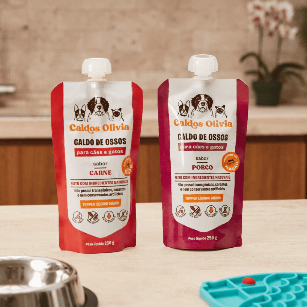 Feitos com ingredientes de grade humana, sem corantes ou conservantes artificiais, os caldos passam por um cozimento lento de 12 horas para extrair colágeno, aminoácidos e nutrientes que auxiliam na digestão, mobilidade, saúde da pele, pelos e muito mais.