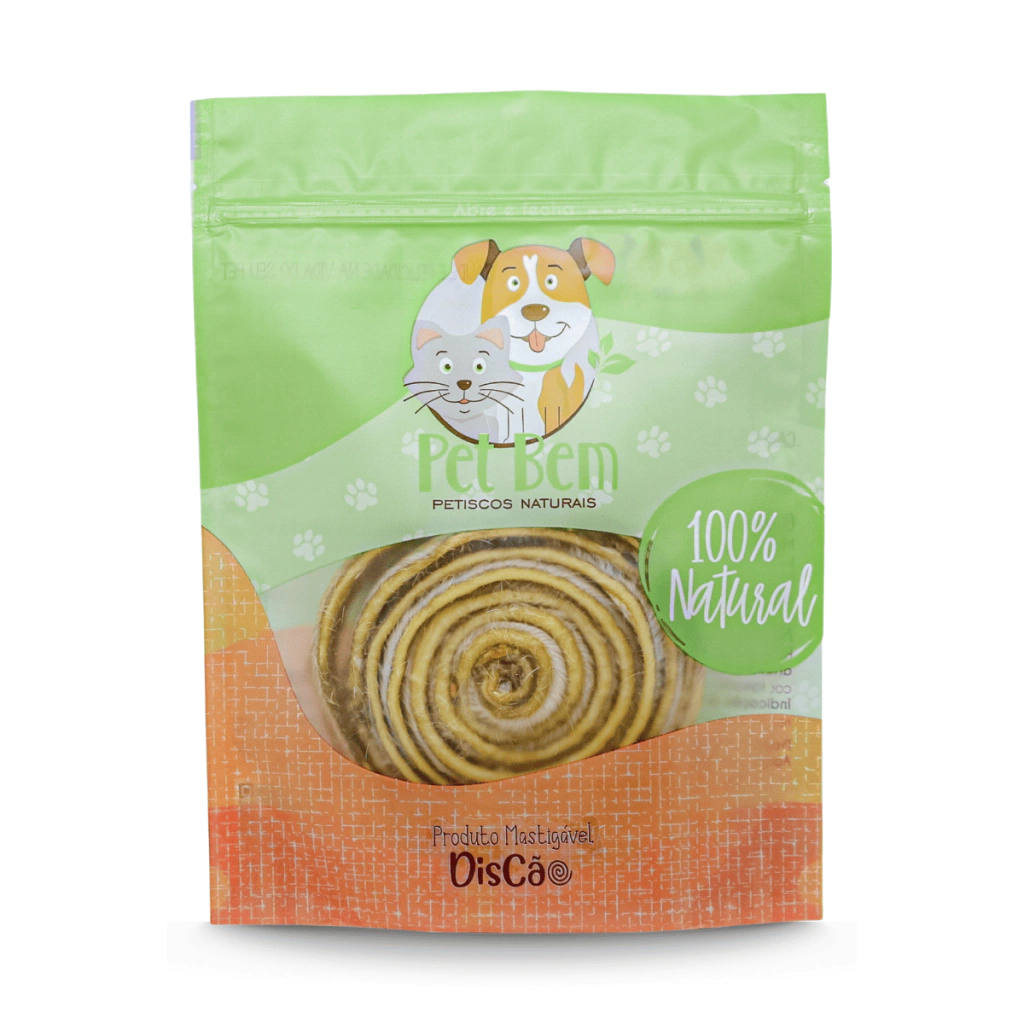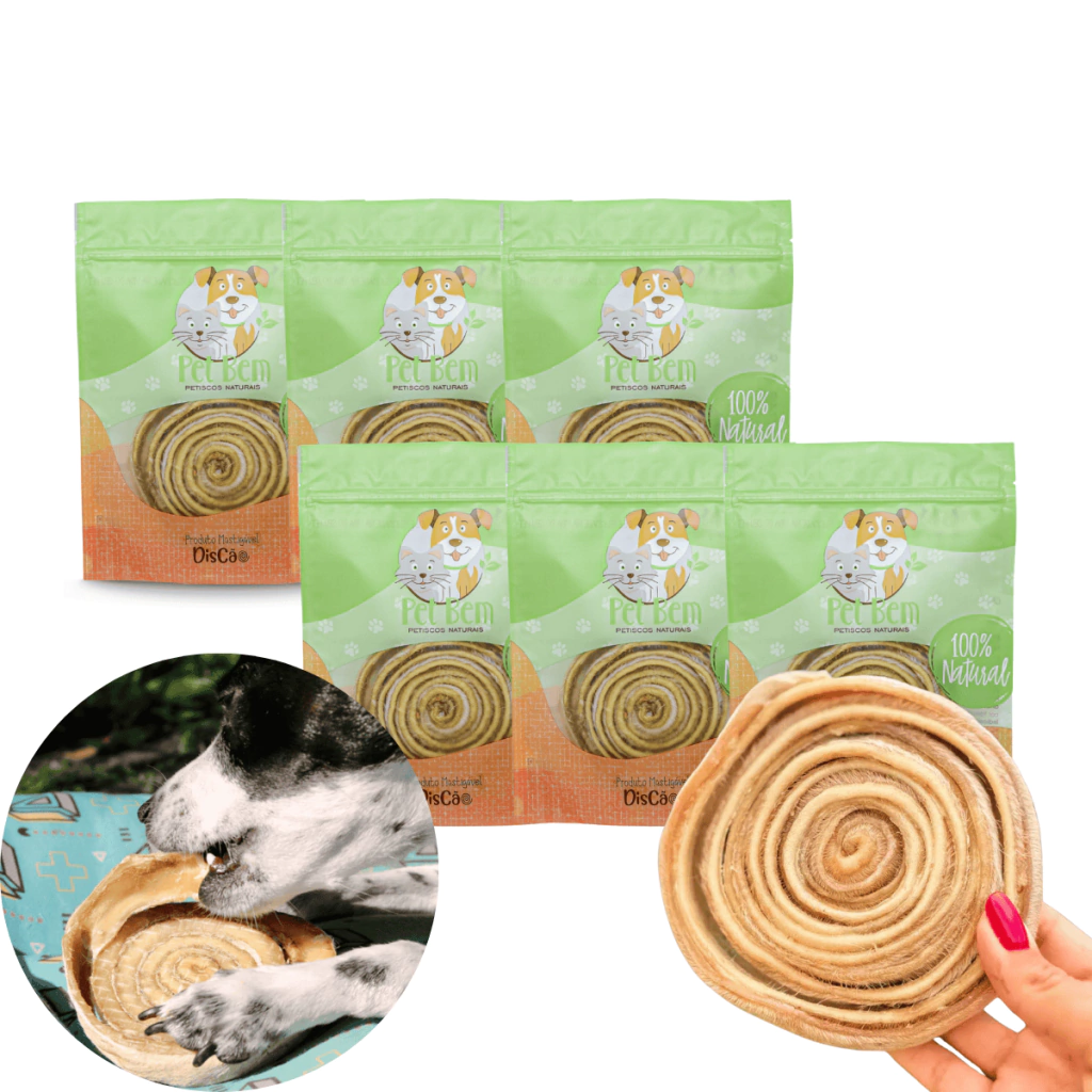 O DisCão é um mordedor natural, resistente e duradouro, feito com couro bovino com pelos, ideal para cães de todos os portes que amam roer. Além de entreter por longos períodos, auxilia na limpeza dos dentes, no combate ao tédio e no estímulo ao comportamento natural de mastigação.