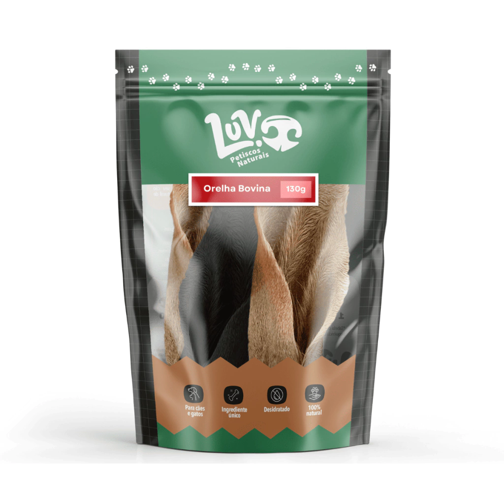 1x Orelha Bovina 130g Luv → Supre a necessidade natural do cão de roer.