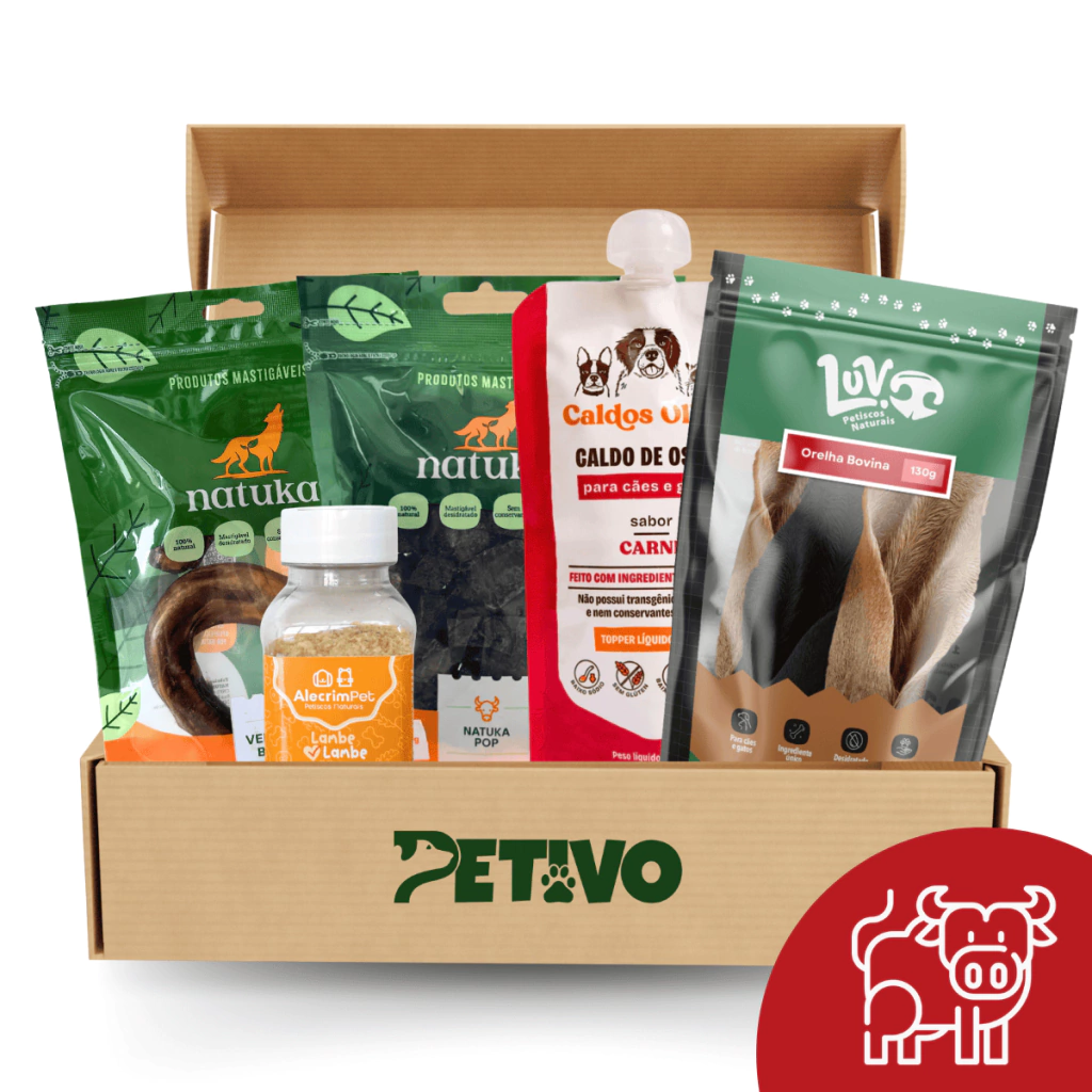 O Kit Bovino Natural foi criado para cães com mordida leve a moderada, oferecendo um mix completo de nutrição, hidratação e enriquecimento ambiental. Ele reúne caldo, petiscos e mordedores 100% naturais à base de carne bovina, garantindo saúde bucal, articulações fortes, pelagem saudável e estímulo mental. Indicado para cães de todos os portes, incluindo filhotes e idosos, transforma cada dia do seu pet em uma experiência nutritiva e saborosa.