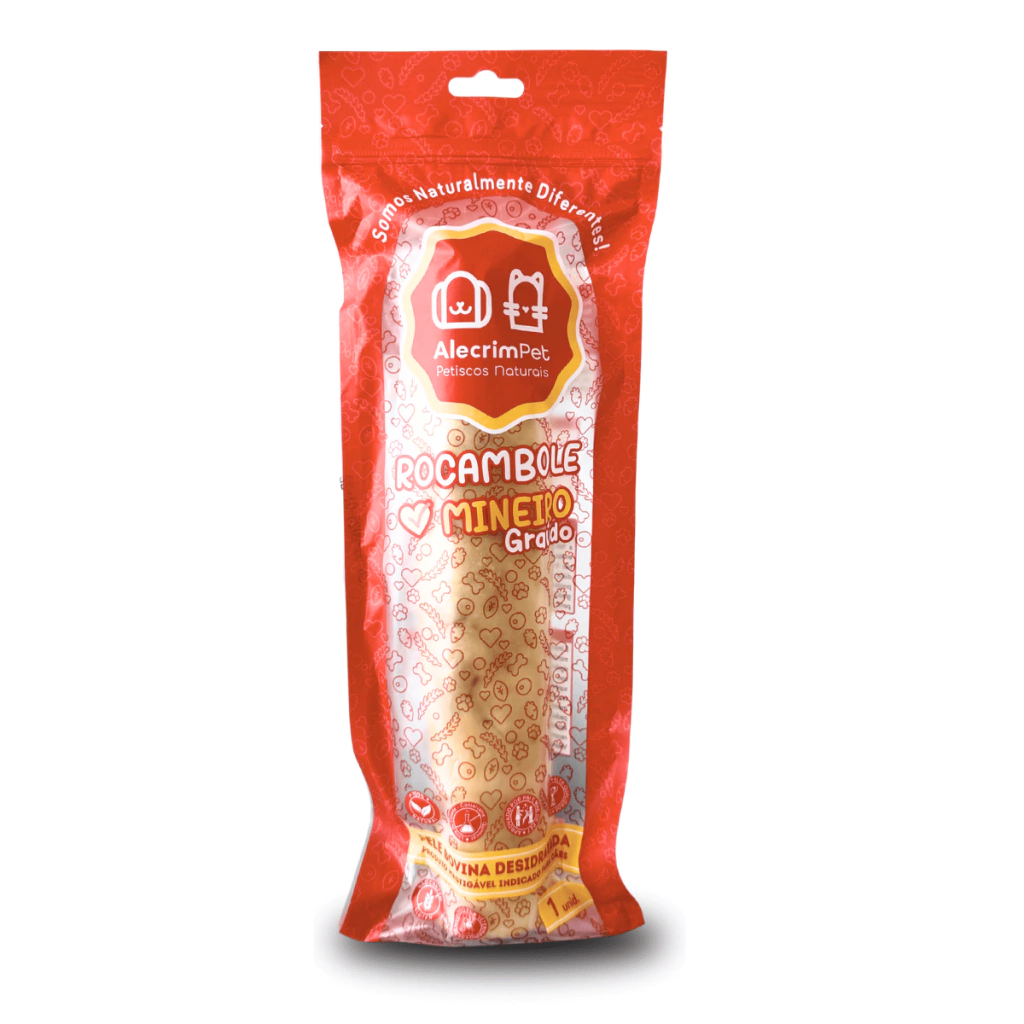3) Mordedor Natural Rocambole Graudo Pele Bovina AlecrimPet - Estimula o enriquecimento ambiental, ajudando a reduzir a ansiedade e o estresse.