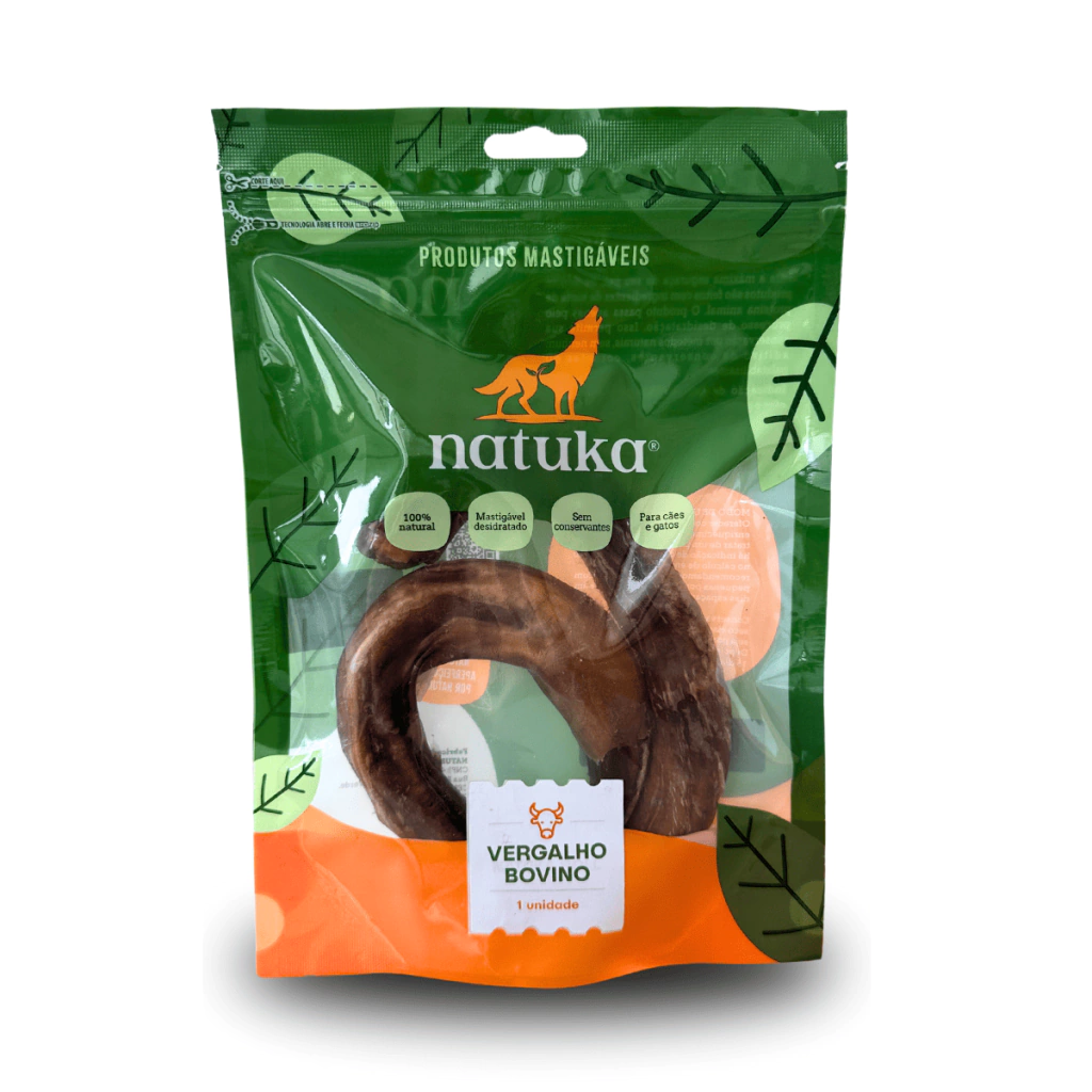 2) Mordedor Natural Vergalho Bovino 1un Natuka – Alta resistência e palatabilidade para cães que adoram um desafio na mastigação.