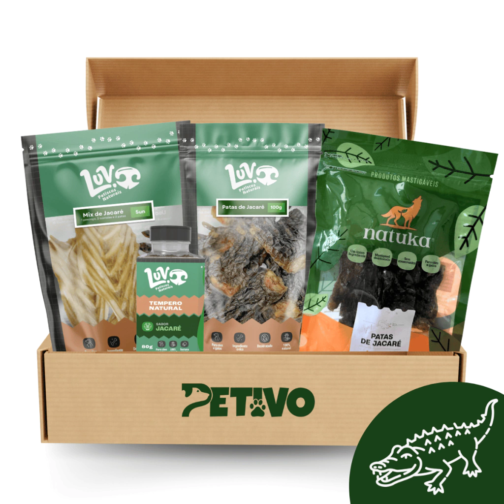 O Kit Jacaré Natural reúne uma seleção de mordedores exóticos e nutritivos, desenvolvidos especialmente para cães com mordida moderada a pesada. Contém mix de jacaré, carcaça, patas desidratadas e saborizante natural, oferecendo uma experiência completa de enriquecimento ambiental, mastigação saudável e sabor irresistível. Ideal para cães com alergias a proteínas convencionais e para quem precisa de desafios duradouros na rotina.