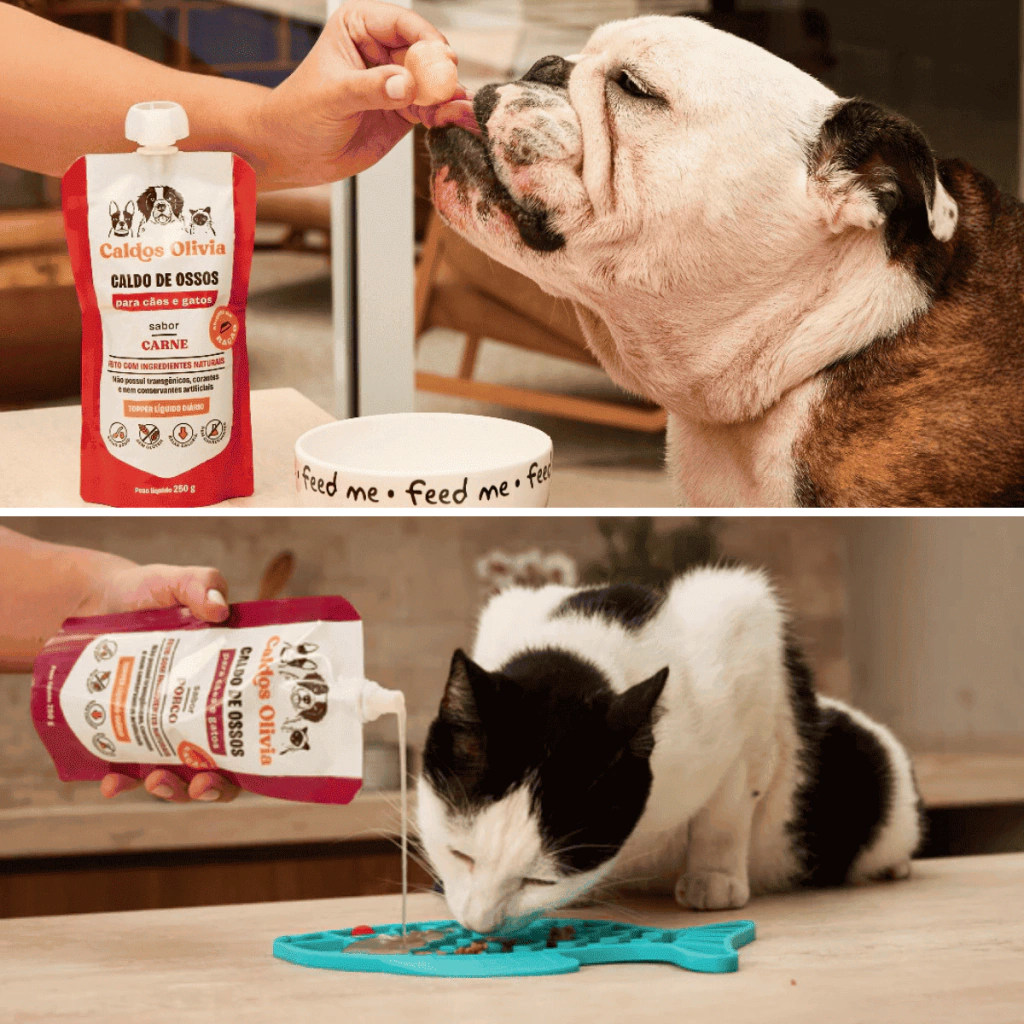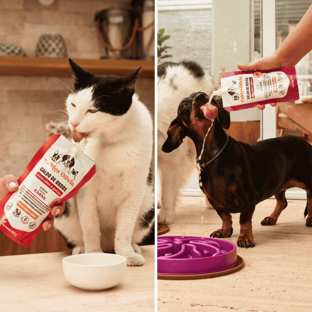 Feitos com ingredientes de grade humana, sem corantes ou conservantes artificiais, os caldos passam por um cozimento lento de 12 horas para extrair colágeno, aminoácidos e nutrientes que auxiliam na digestão, mobilidade, saúde da pele, pelos e muito mais.
