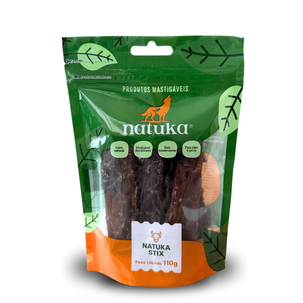 3) Mordedor Natural Natuka Stix 100g (Ligamento Bovino) – Rico em colágeno, auxilia na mobilidade e na mastigação segura.