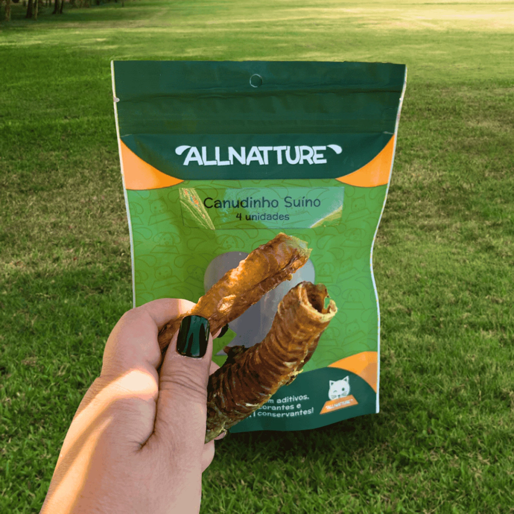 O Canudinho Suíno All Natture é um mordedor natural, feito com couro suíno desidratado, ideal para entreter cães enquanto auxilia na limpeza dos dentes e reduz o estresse. Com textura crocante e aroma atrativo, é perfeito para satisfazer o instinto natural de mastigação dos pets.