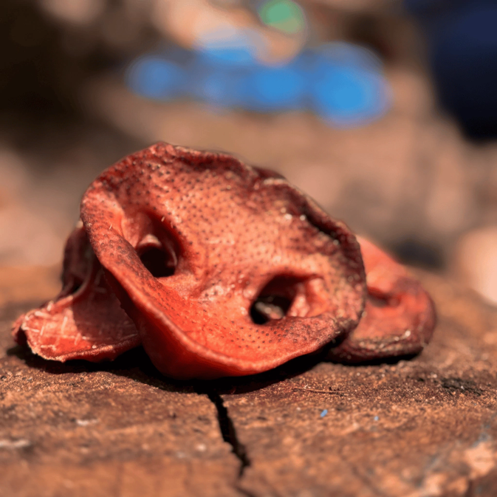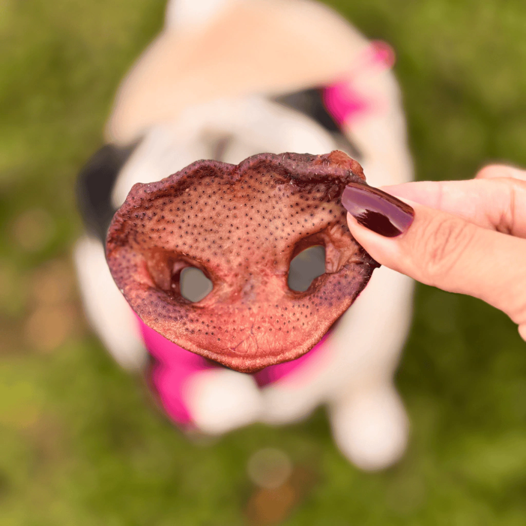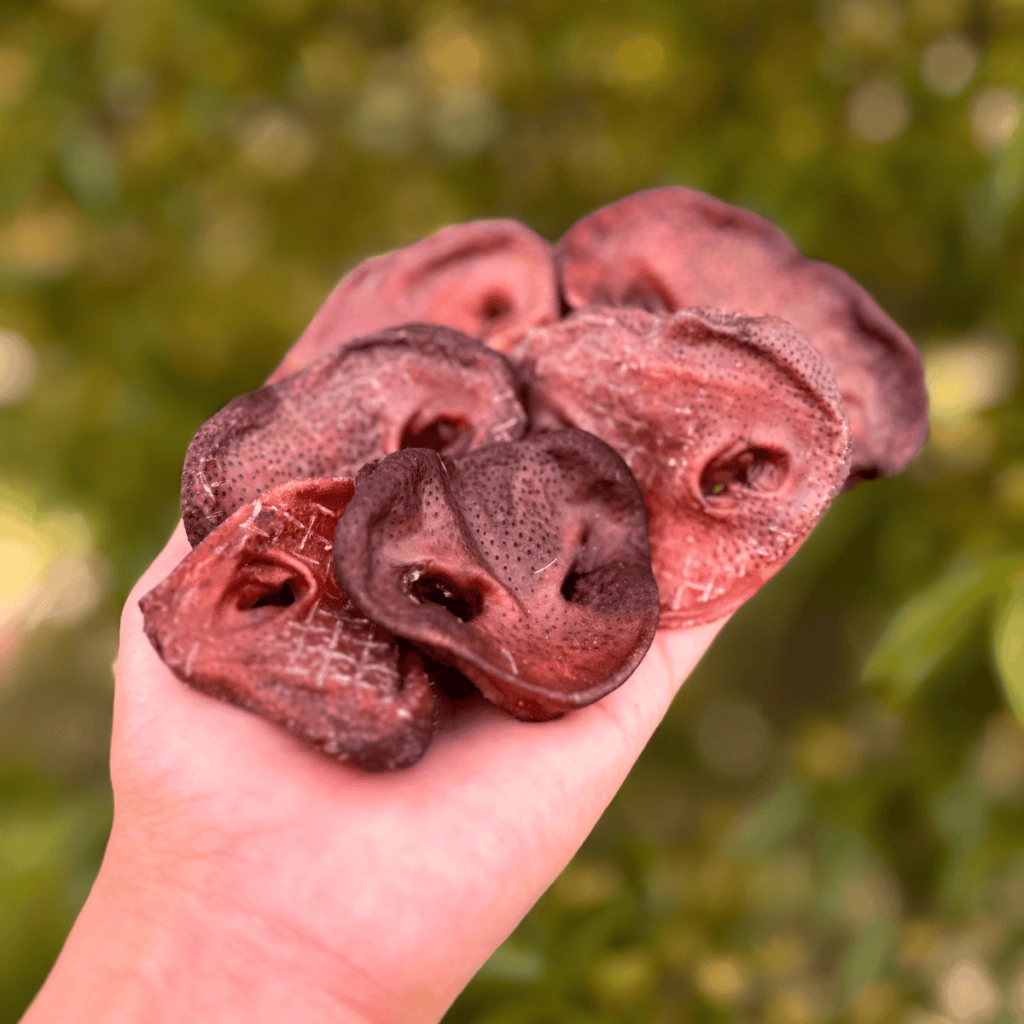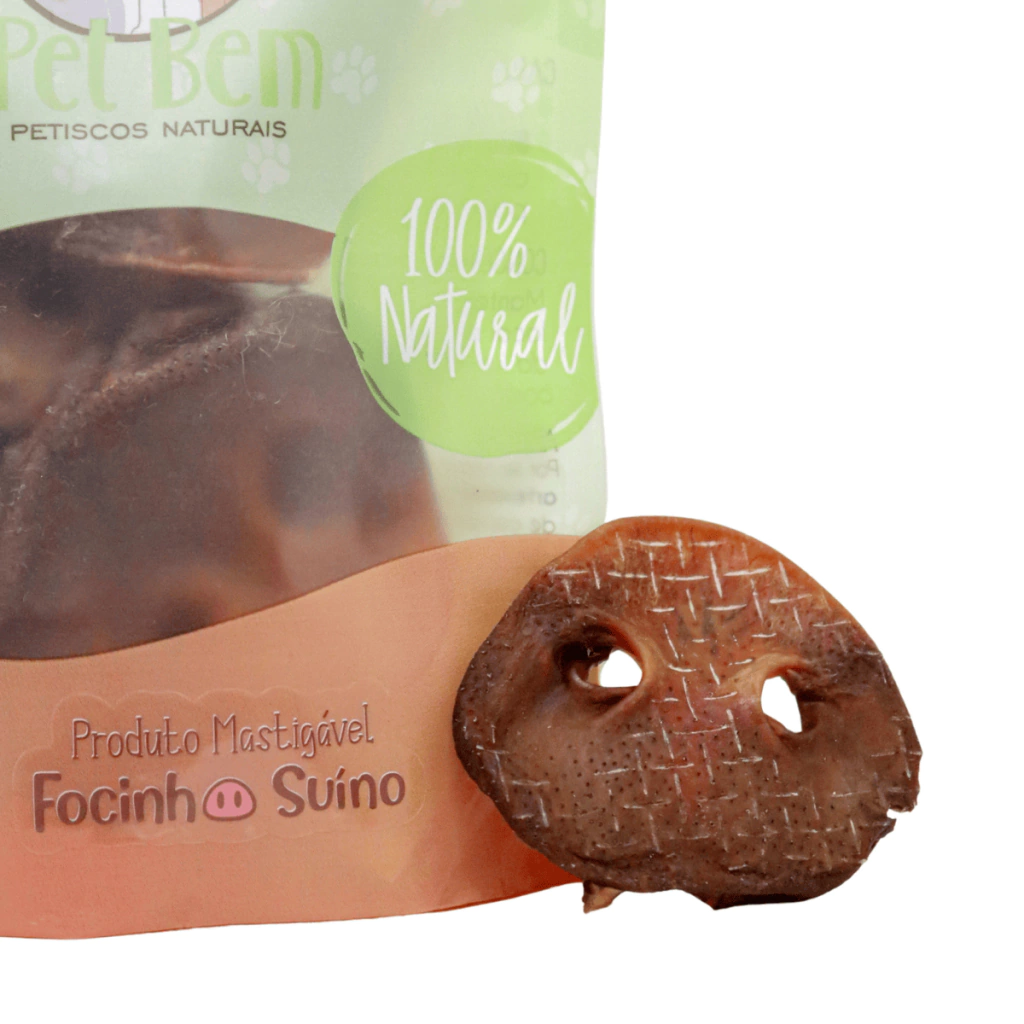 O Focinho Suíno Pet Bem é um mastigável natural feito a partir da máscara suína desidratada, com rigidez moderada e aroma atrativo para os cães. Desidratado lentamente em temperatura controlada, preserva nutrientes e sabor, sem adição de químicos, corantes ou conservantes.