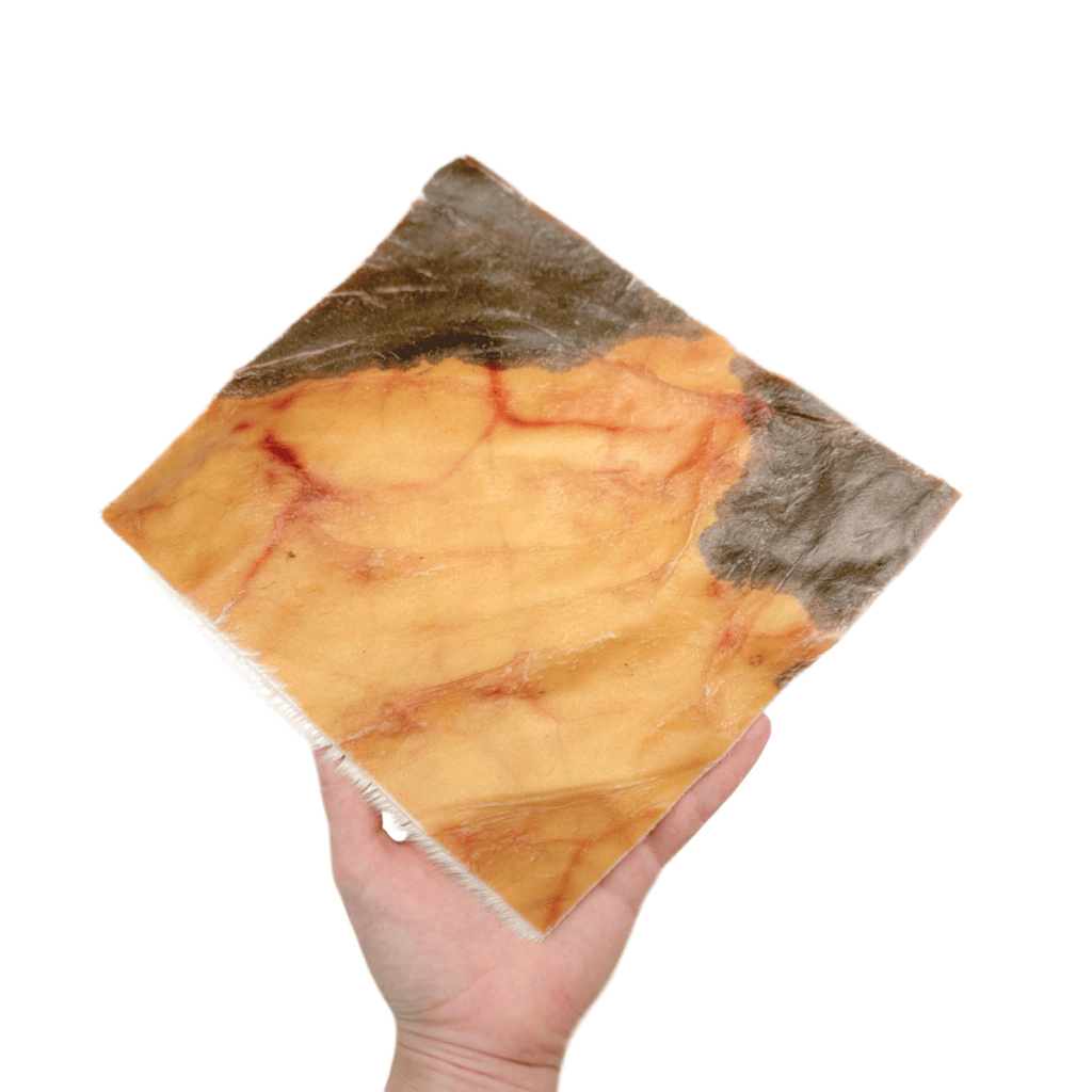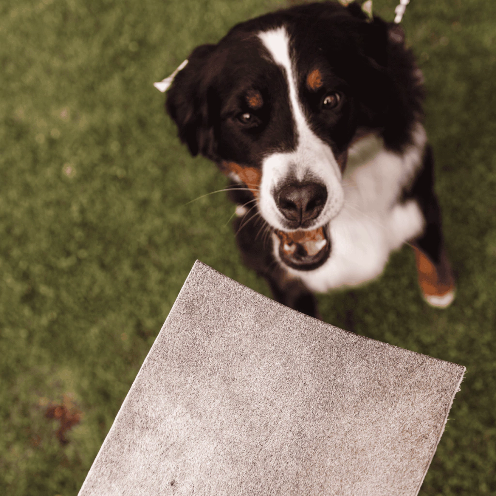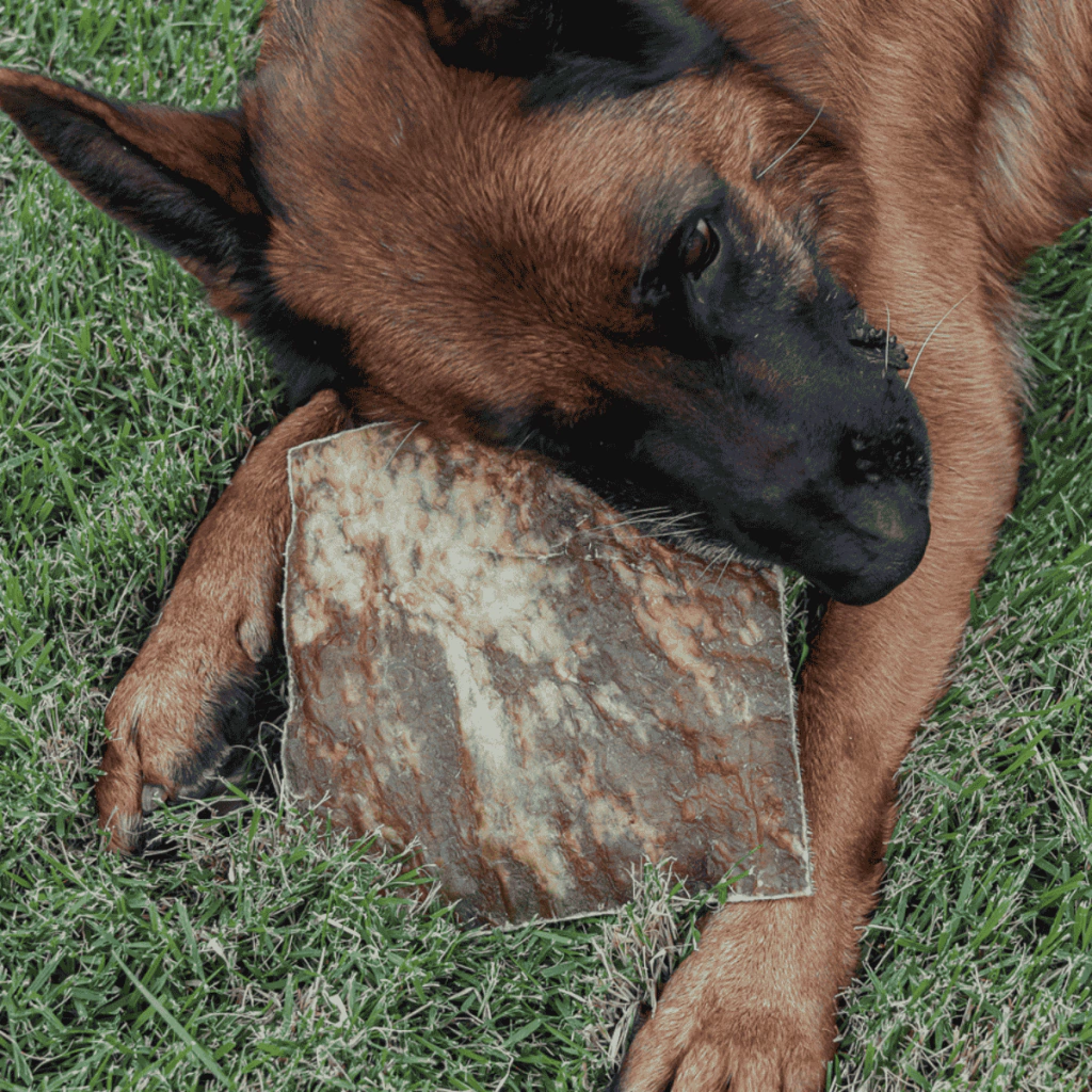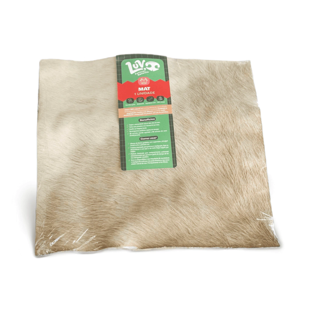 O Mat Luv é um mastigável 100% natural feito com pele bovina desidratada com pelos, no formato quadrado (aproximadamente 20cm x 20cm). Por ser plano e sem pontos de apoio, exige mais habilidade na mastigação, o que torna a atividade ainda mais desafiadora e envolvente para cães de mordida moderada a pesada.