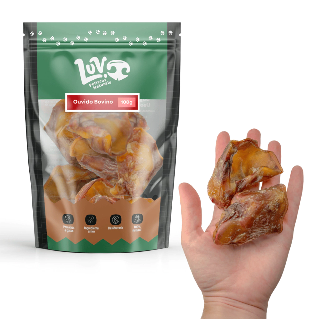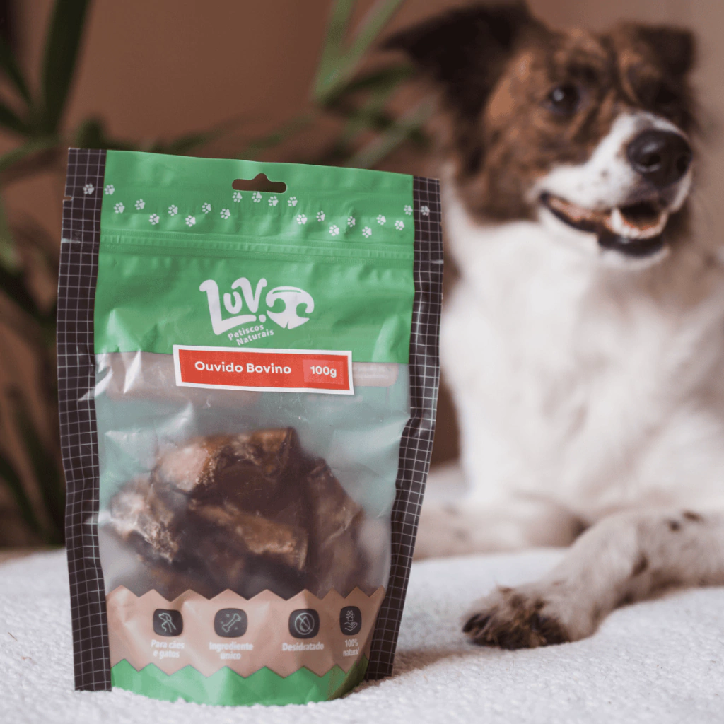 Proporcione ao seu cão uma experiência de mastigação saborosa, versátil e 100% natural com o Ouvido Bovino Luv. Embalado com aproximadamente 100g (de 4 a 6 unidades), esse mordedor é feito exclusivamente com orelha bovina desidratada, sem adição de conservantes ou químicos. Pode ser servido puro ou recheado com patês para uma atividade ainda mais envolvente.