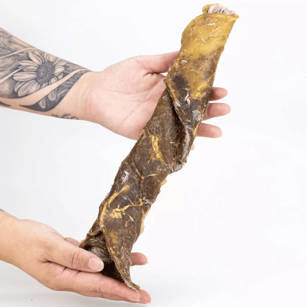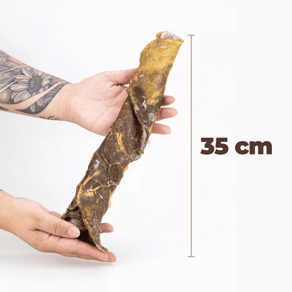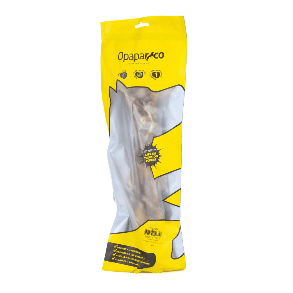 O Gigantão da Opaparico é um mordedor natural de aproximadamente 40 cm, feito com pele bovina enrolada, especialmente desenvolvido para cães de porte grande com mordida pesada. Seu formato robusto oferece alta resistência à mastigação vigorosa, promovendo entretenimento duradouro e alívio do estresse.