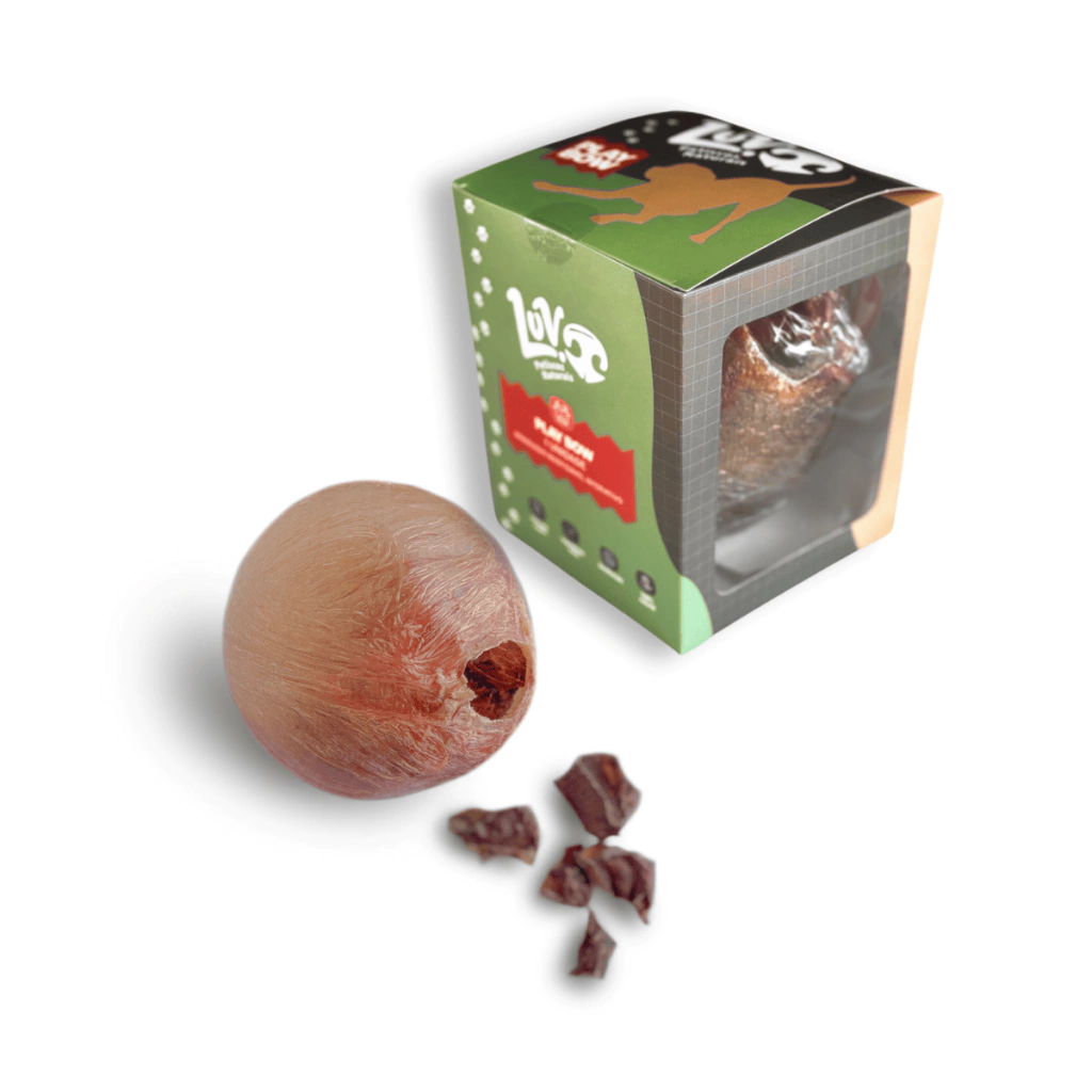 Fabricado com bexiga bovina inflada e recheada com pulmão bovino desidratado, ele oferece uma experiência única: primeiro, o pet tenta retirar os petiscos do interior da bolinha, e depois pode consumir o mastigável por completo.