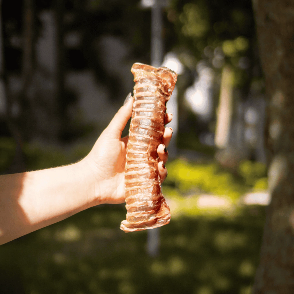 Traqueia recheada com pulmão bovino: uma experiência interativa, natural e irresistível para cães de todos os portes.
