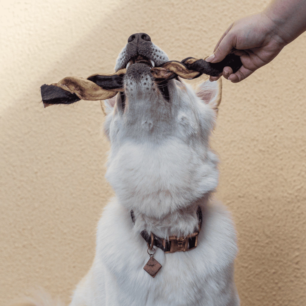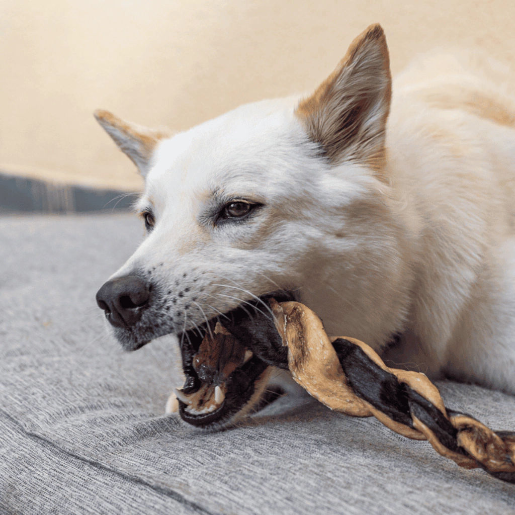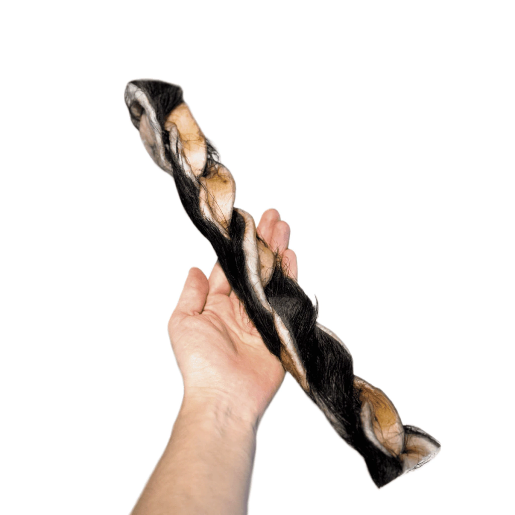 Por ser feito com couro bubalino desidratado, é mais espesso e durável que o bovino — promovendo mastigação prolongada, limpeza bucal natural e enriquecimento ambiental.