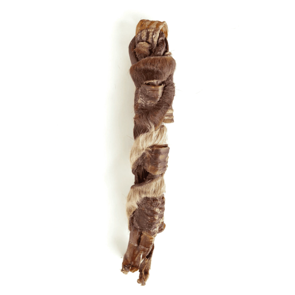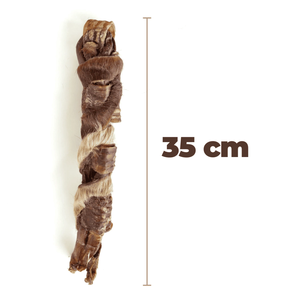 O DuraCão é um mordedor completo: combina pele bovina trançada, traqueia e vergalho bovino em uma peça única com aproximadamente 35 cm de pura durabilidade e atratividade. Indicado para cães de porte médio e grande com mordida pesada, ele oferece estímulo físico e mental enquanto fortalece a mandíbula, combate o tédio e contribui para a saúde bucal.