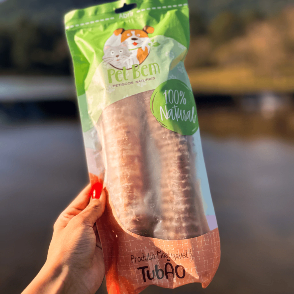 O Mordedor Natural Tubão Bovino Pet Bem é ideal para cães que adoram desafios! Composto por duas traqueias bovinas de tamanho grande, esse mastigável natural promove higiene bucal, bem-estar e enriquecimento ambiental. Além de ser delicioso, pode ser recheado para tornar a experiência ainda mais atrativa.