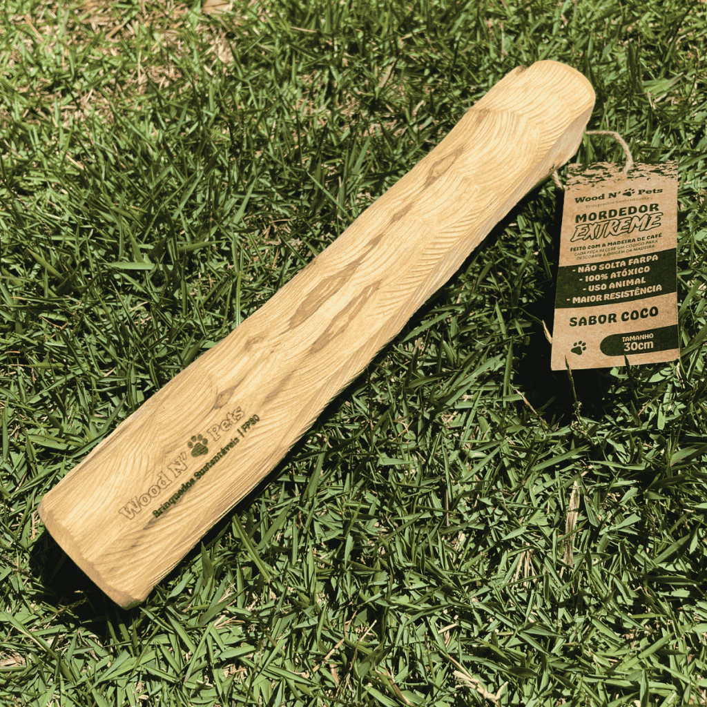 Para cães com mordida poderosa que amam roer, o Mordedor Natural Extreme de Madeira de Café é a escolha ideal. Produzido com madeira sustentável proveniente de podas controladas do cafeeiro, esse brinquedo resistente proporciona mastigação segura e natural, sem risco de farpas perigosas.