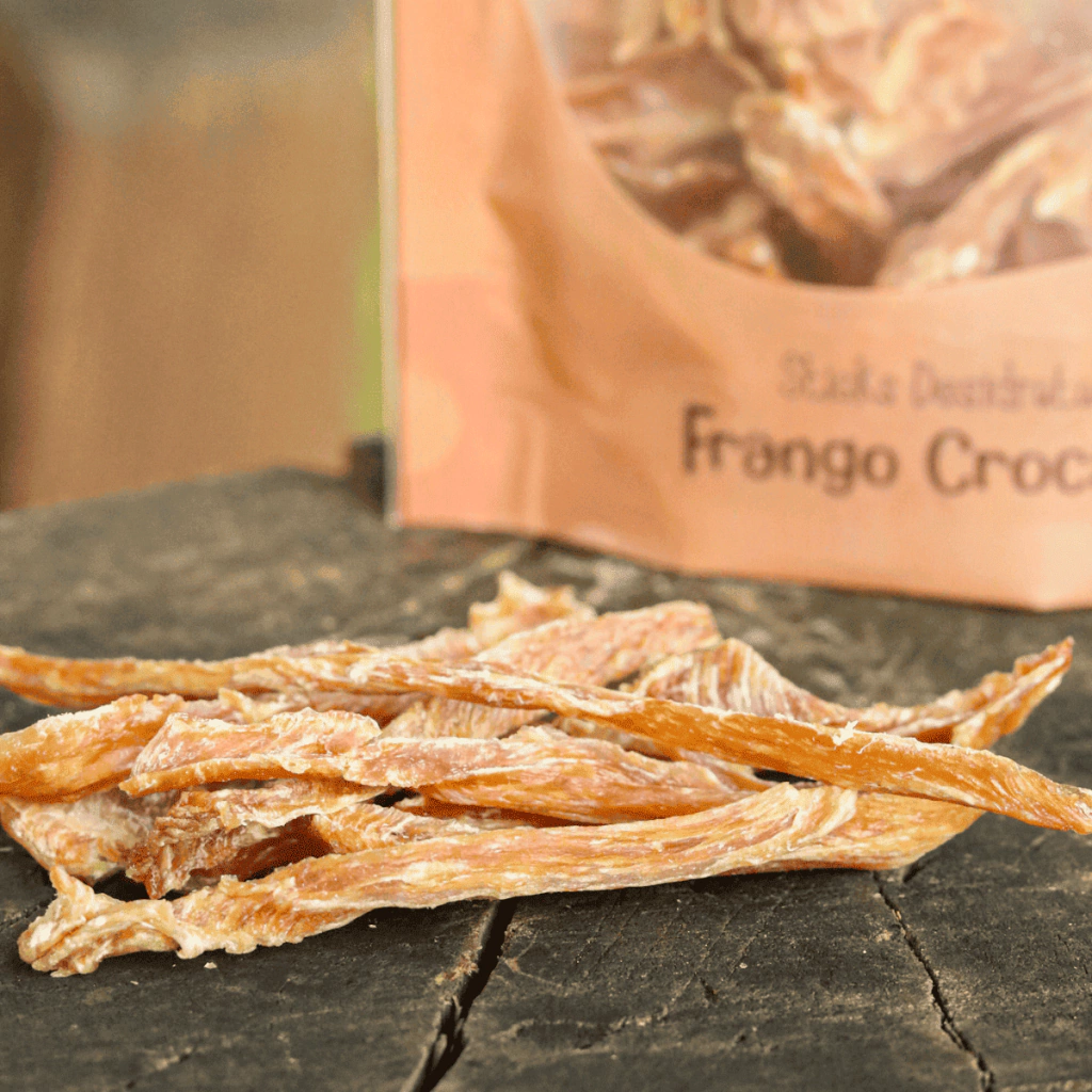 O Frango Crocante Pet Bem é um petisco 100% natural, feito exclusivamente de peito de frango desidratado. Livre de conservantes, corantes ou aditivos artificiais, é uma opção deliciosa e saudável para cães e gatos de todos os portes.