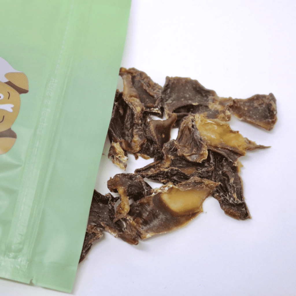 Esse snack é uma proteína pura desidratada, sem adição de farinhas, sendo uma excelente opção para cães com sensibilidade a grãos.