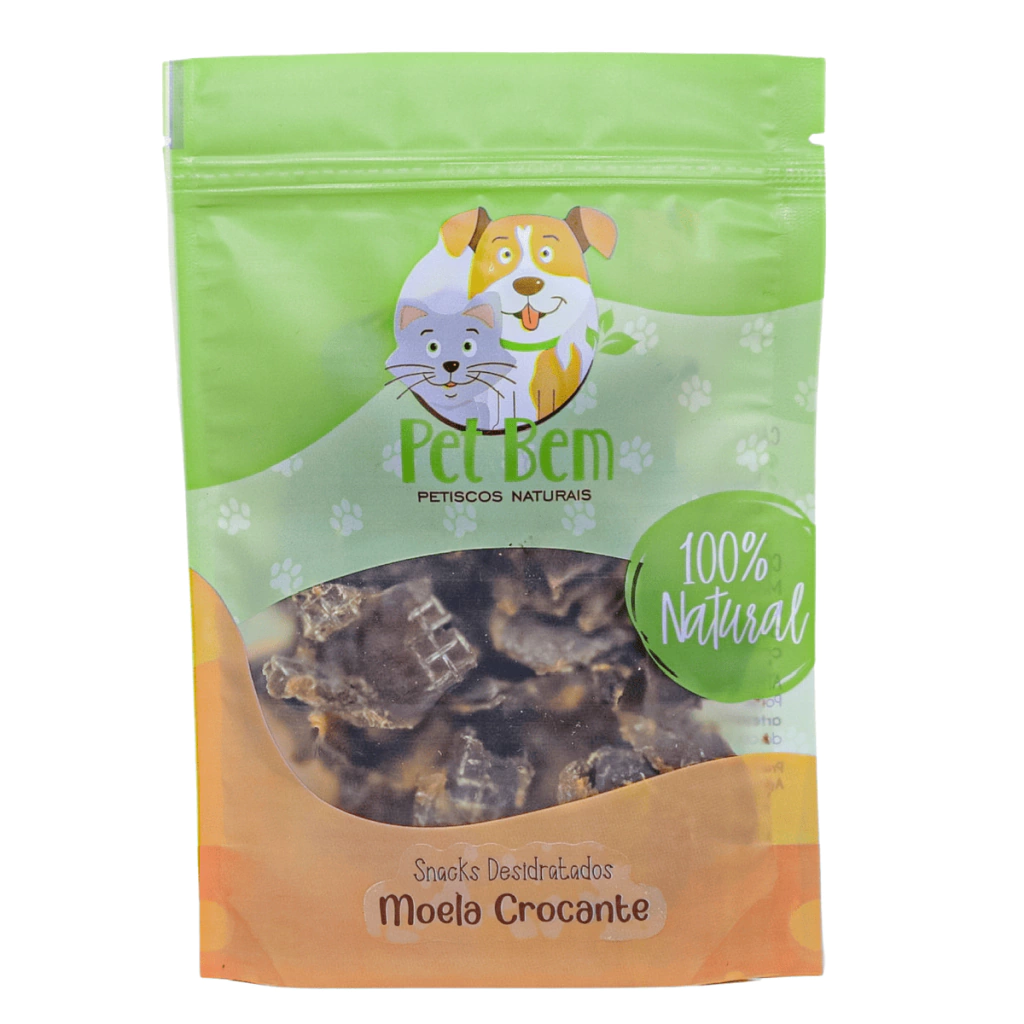 O Snack de Moela Crocante Pet Bem é um petisco 100% natural, feito exclusivamente com moela de frango desidratada. Livre de conservantes, corantes e aditivos artificiais, ele é uma opção nutritiva, crocante e deliciosa para cães de todos os portes.