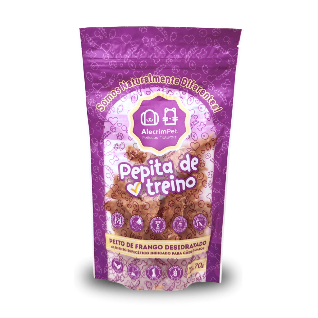 A Pepita de Treino é um petisco 100% natural, feito exclusivamente com peito de frango desidratado. Desenvolvido para proporcionar saúde e bem-estar ao seu pet, esse snack é uma excelente opção para treinos, enriquecimento ambiental e recompensas diárias. Sua textura crocante e aroma irresistível fazem com que seja altamente atrativo para cães e gatos.