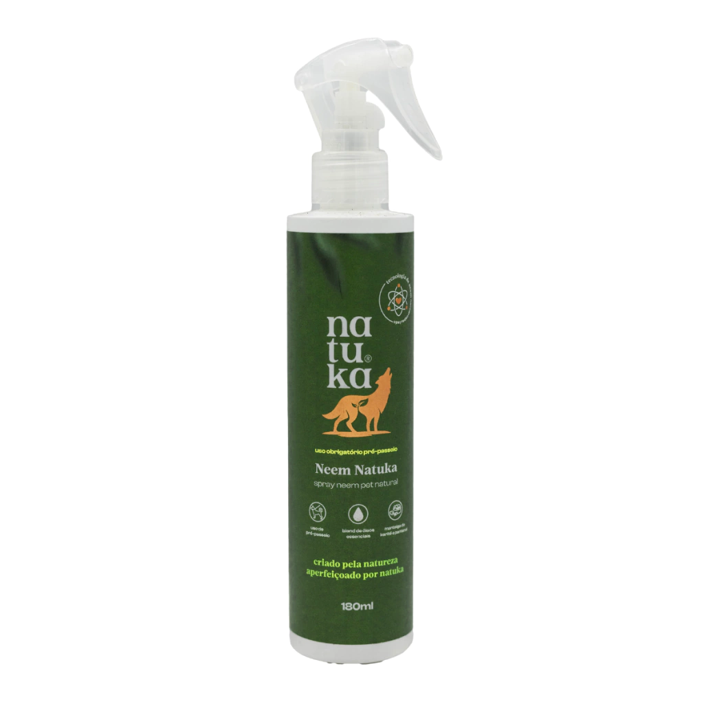O Repelente Spray Neem Natuka é a solução ideal para proteger seu pet antes dos passeios. Com tecnologia nanoencapsulada, garante uma liberação gradual dos benefícios do neem, prolongando sua ação e reduzindo a necessidade de reaplicações. Diferente de outros sprays, sua fórmula exclusiva não amarela os pelos e possui um aroma suave e natural, tornando a experiência mais agradável para o pet e o tutor.